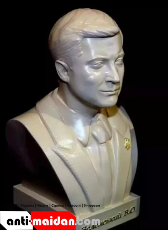 Появление бюста Зеленского не может не удивлять: ранее сам президент Украины заявлял, что его портреты не должны висеть в кабинетах чиновников.