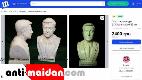 Теперь все желающие могут приобрести бюст президента Украины Владимира Зеленского. Правда цена данного гипсового изваяния далеко не демократичная. За данную композицию просят 2 тыс. грн.