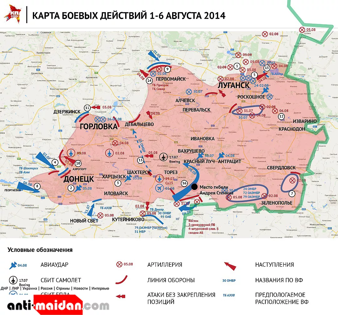 Боевые действия в Донбассе 1-6 августа 2014 г. на карте