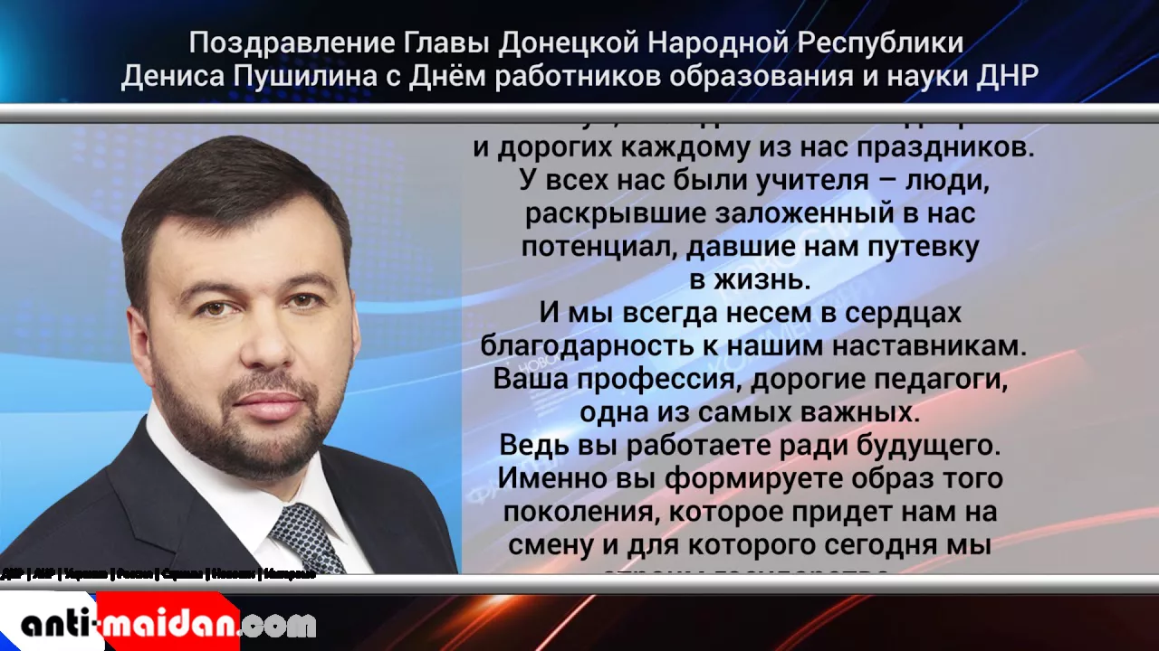 Поздравление Главы ДНР Дениса Пушилина с Днём работников образования и науки. Актуально. 06.10.19