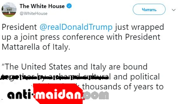 Что любопытно, официальный аккаунт Белого дома в Twitter повторил нелепое заявление.