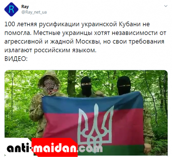 «100 летняя русификации украинской Кубани не помогла. Местные украинцы хотят независимости от агрессивной и жадной Москвы, но свои требования излагают российским языком», – говорится в аннотации к ролику.