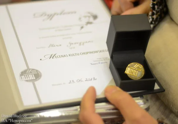 Недавно работа нашей организации была удостоена награды общества Фредерика Шопена в Варшаве, поскольку мы единственные в регионе проводим конкурс молодых исполнителей музыки Шопена, который состоится в следующем году уже в пятнадцатый раз. Нам передали три медали с надписью: «Меценат движения Шопеновского» и три диплома. Также мы получили благодарственное письмо за подписью министра культуры ДНР, в котором был отмечен вклад нашей организации в дело сплочения и объединения людей всех национальностей, жителей Донецка, Макеевки и других городов нашей Республики.