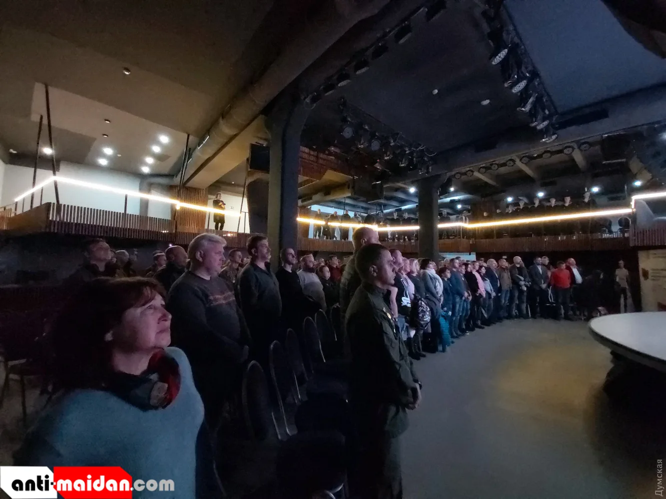 Как сообщают СМИ, на показ в Одессе пришли военные моряки, курсанты, «ветераны АТО» и пособники карателей – так называемые волонтёры. Просмотр фильма окончился аплодисментами стоя (отчего-то не на коленях, как принято у «свидомых» граждан) и выступлением «героiв» позорного отступления. Они рассказали съёмках и о самой войне.