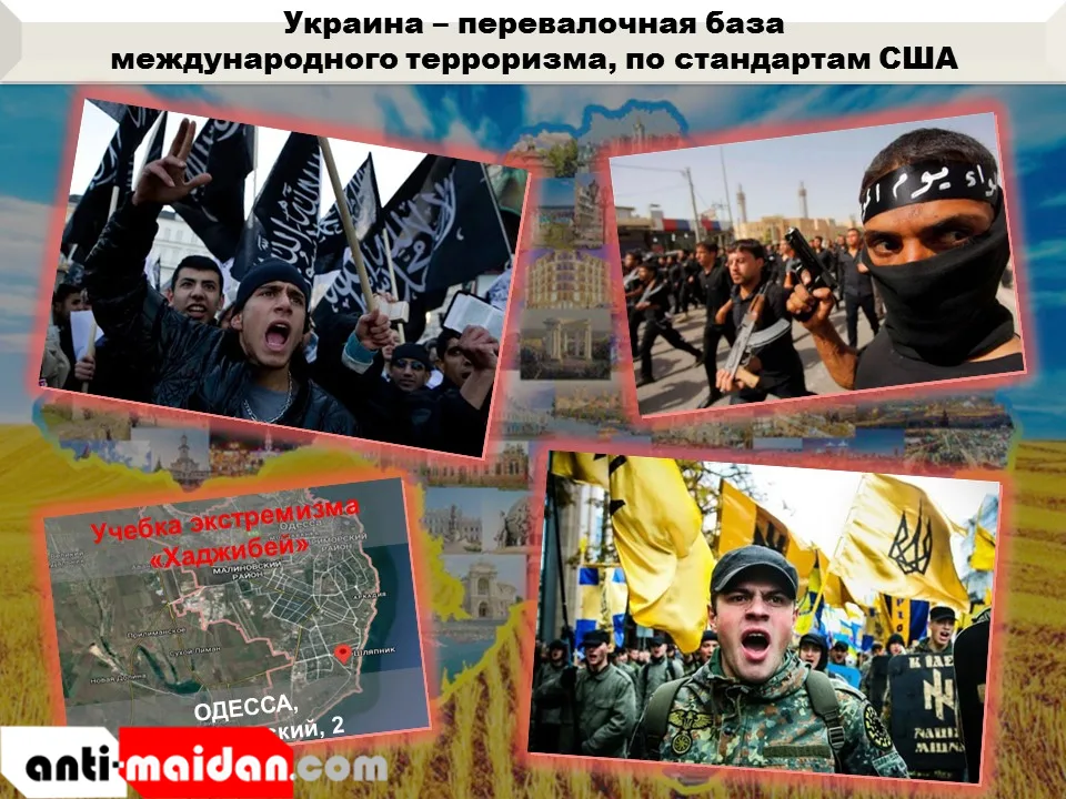 Одна из таких школ под названием «Хаджибей» функционирует в г. Одесса, по адресу пер. Ливерпульский, д. 2. В данном «учебном заведении» украинские нацисты и их коллеги из ряда стран Ближнего Востока учатся «правильному терроризму», по стандартам США у наставников из экстремистской организации «Хизб-ут-Тахрир-аль-Ислами»*.