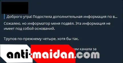Казалось бы, на этом можно ставить точку и подводить итоги всего безобразия. Но, получив от внимательных военных Telegram-каналов пачку информационных «звездюлей», джихадисты и их последователи в Сети начали спешно топить концы в воду и опровергать собственные фейки.