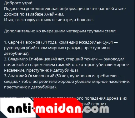 Вслед за одним русскоязычным источником подтянулись и другие каналы распространителей фейковых новостей и вбросов о нашем присутствии в Сирии. Все они наперебой стали сообщать непроверенные данные, даже не вдаваясь в детали о том, что это за люди и откуда вообще появились имена.