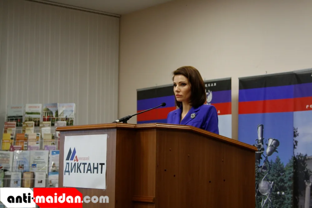 «В первую очередь мне бы хотелось поздравить всех присутствующих с открытием образовательной акции «Донецкий диктант». Для меня большая честь находиться здесь, на центральной площадке этого проекта и продиктовать вам авторский текст нашей молодой донецкой поэтессы. Приятно видеть столько желающих проверить своё знание русского языка. Особенно отрадно, видеть такое большое количество молодых людей. «Донецкий диктант» уже стал для нашей Республики доброй традицией и сегодняшний день – прекрасный повод обратить внимание на свои ошибки в правописании и преодолеть ещё одну ступеньку в личностном росте. Сегодня некоторые из вас впервые за долгое время опять сядут за парты. Это очень волнительный момент. Но пусть эмоции не берут над вами верх. Главное сосредоточиться, не спешить, внимательно отнестись к своей работе и тогда все получится. Желаю вам всем удачи и только наилучших оценок », – сказала Наталья Волкова.