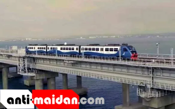 В сети появилось видео проезда первого рельсового автобуса по Крымскому мосту.