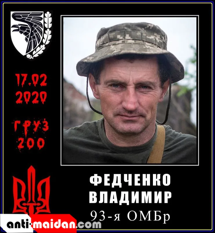 17.02.2020 — Федченко Владимир Николаевич, 1973 г.р., младший сержант, главный сержант взвода 93 ОМБр. С 2016 года добровольно отправился в зону «ООС», где за деньги истреблял мирное население Донбасса.