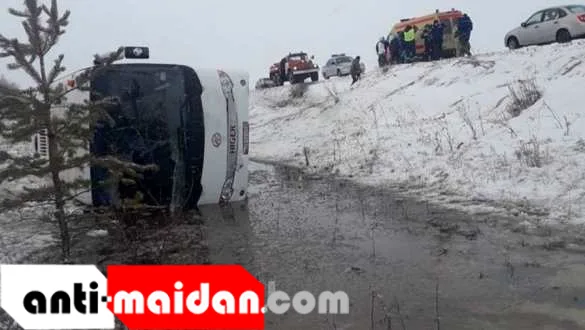 Предварительно причина аварии — сложные погодные условия: на обледенелом участке трассы водитель автобуса не смог справиться с управлением.