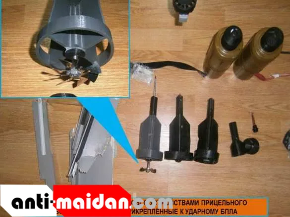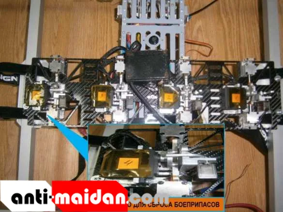 Беспилотник, кустарного производства, был оборудован устройствами сброса боеприпасов, и нес боекомплект из 4 гранат кумулятивного типа для разрушения сооружений, с применением которых командир 72 бригады Богомолов намеревался осуществить прицельную бомбардировку жилых домостроений н. п. Калиново и, в преддверии встречи трёхсторонней контактной группы в Минске, обвинить в обстреле подразделения НМ ЛНР.