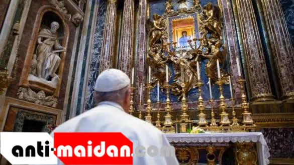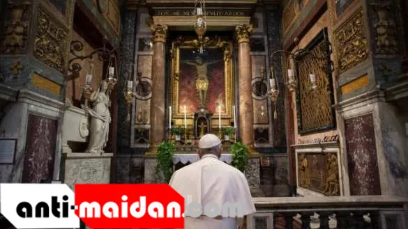 Папа помолился перед чудотворным Распятием, которое, как утверждает предание, в 1522 году спасло Рим от эпидемии чумы.