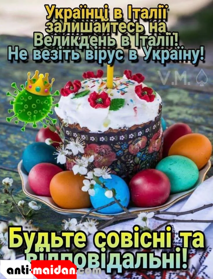 В социальных сетях, к слову, сограждане не желают лицезреть лица соотечественников. В украинских группах в Евросоюзе публикуются картинки с Пасхой и «коронавирусом», призывающие сограждан не возвращаться. Мол, не надо везти на Украину вирус из Европы.