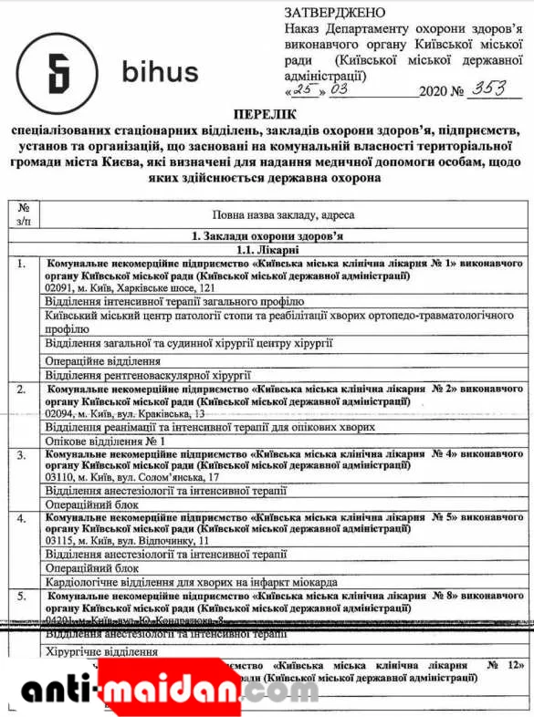 Отмечается, что в определенном Департаментом списке — 17 медучреждений, среди которых Александровская больница, Детская клиническая больница № 7 и Киевский городской центр детской нейрохирургии.