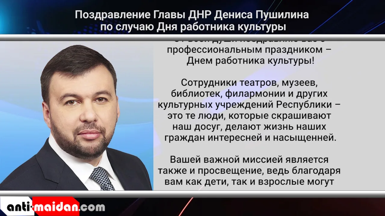 Поздравление Главы ДНР Дениса Пушилина по случаю Дня работника культуры. Актуально. 25.03.20