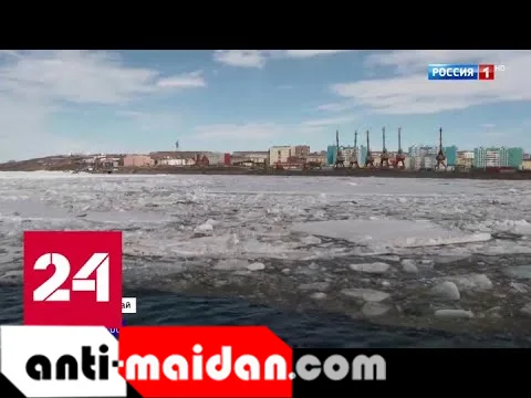 Гигантские ледяные заторы на Енисее разбивают с помощью ледокола — Россия 24