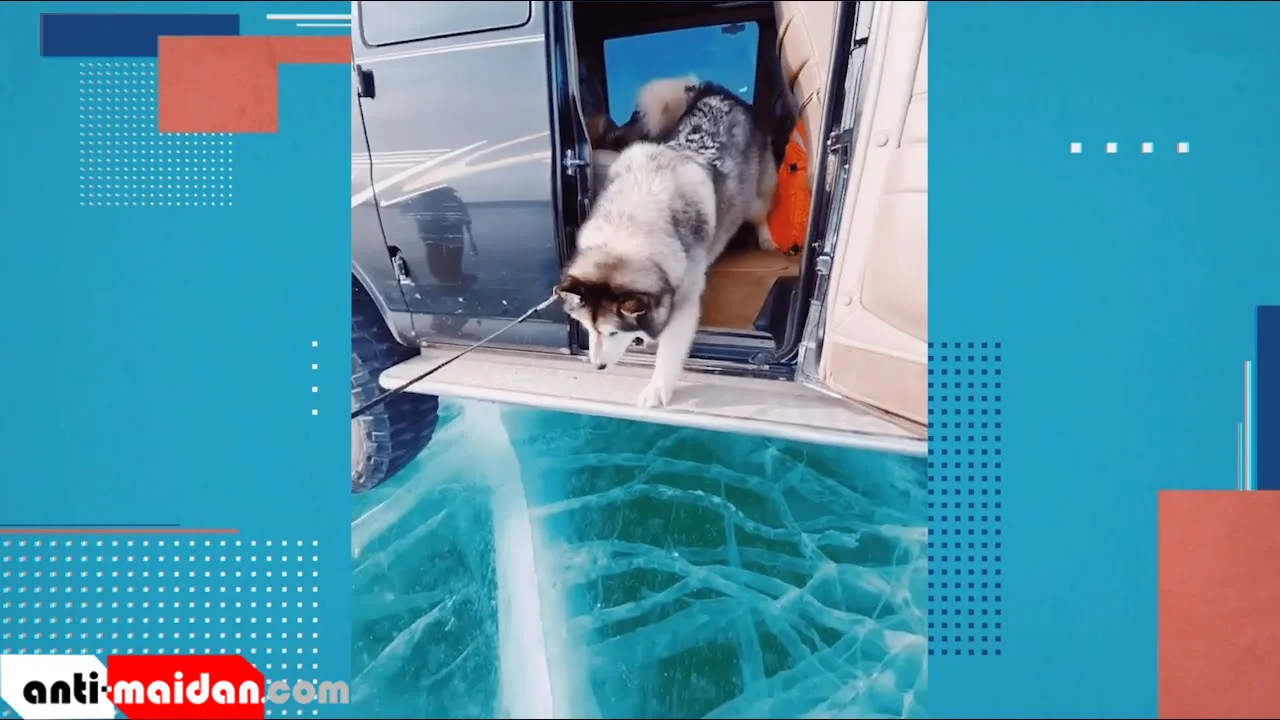 На Байкале маламут отказывается выходить на лёд