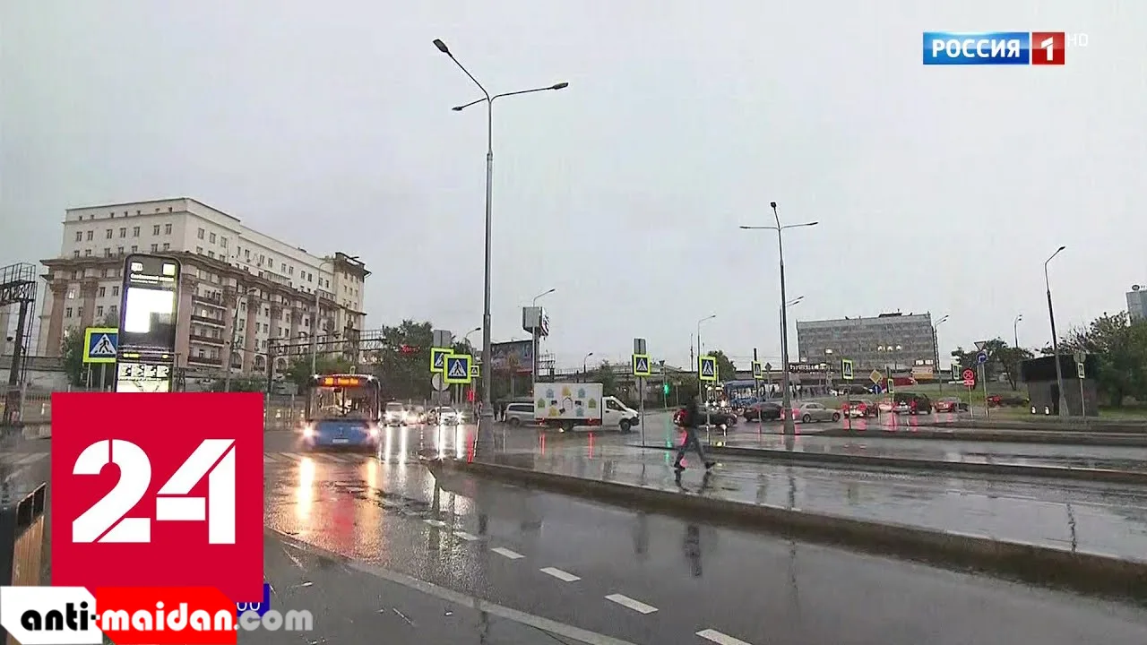 На Москву раньше времени опустилась ночь: столица попала под сильнейший ливень с грозой — Россия 24
