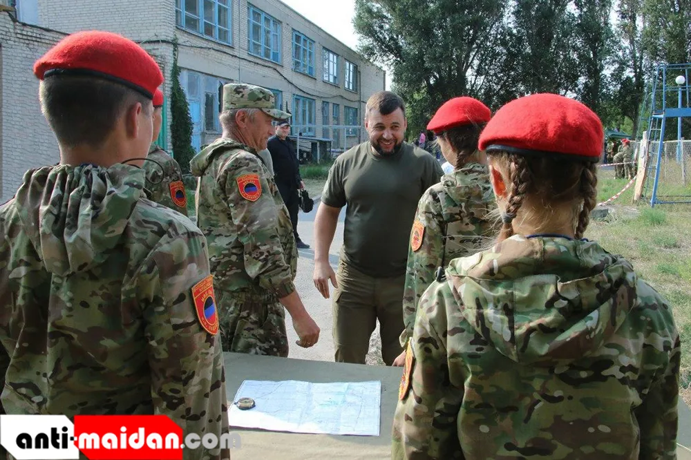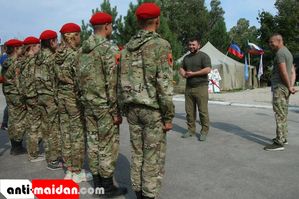 В субботу, 22 августа, Глава Донецкой Народной Республики Денис Пушилин пообщался с воспитанниками общественной организации «Военно-патриотическое движение «Молодая гвардия – Юнармия«», которые находятся на военно-полевых сборах «Юный дружинник» в поселке Седово.