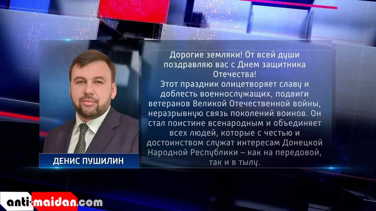 Поздравление Главы ДНР Дениса Пушилина по случаю Дня защитника Отечества. Актуально. 23.02.2021