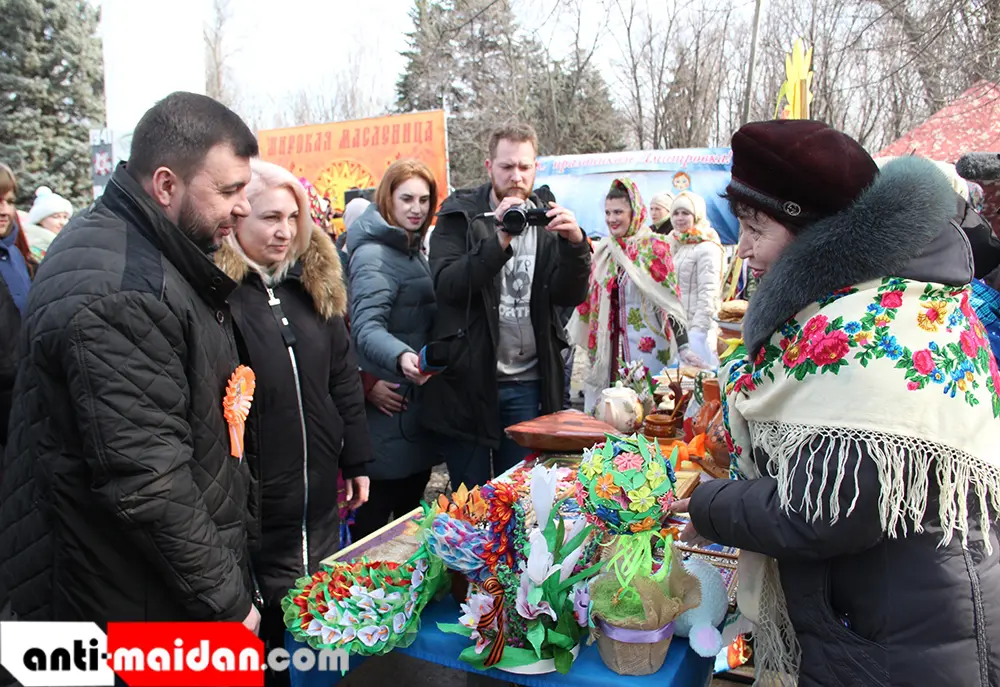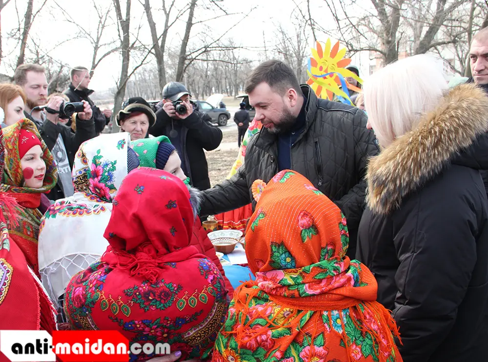В воскресенье, 14 марта, в городах и районах Донецкой Народной Республики проходят народные гулянья по случаю проводов Масленицы. Глава Донецкой Народной Республики Денис Пушилин посетил праздничные мероприятия в селе Дмитровка Шахтерского района.