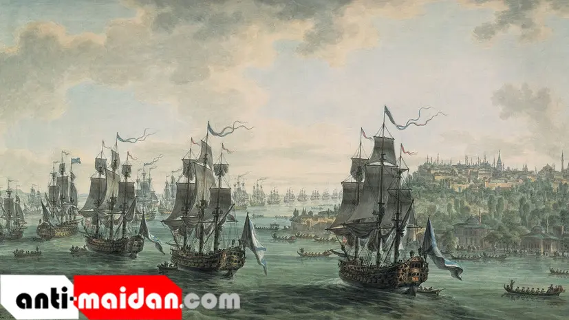 - Российская эскадра под командованием Ф. Ф. Ушакова, идущая Константинопольским проливом