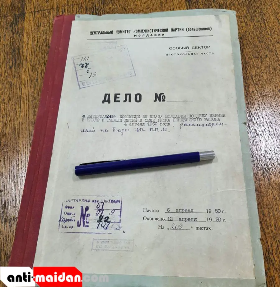 Алексей смог обнаружить там уникальный документ под названием «Материалы комиссии ЦК КП(б) Молдавии по делу взрыва в школе и гибели детей в селе Гиска Бендерского района 4 апреля 1950 года».