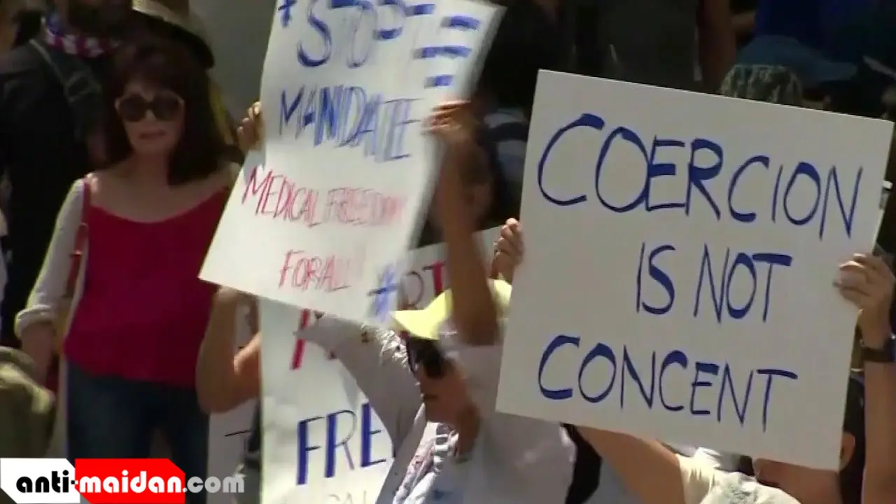 В США не стихают протесты противников вакцинации, несмотря на всплеск заболеваемости COVID-19.