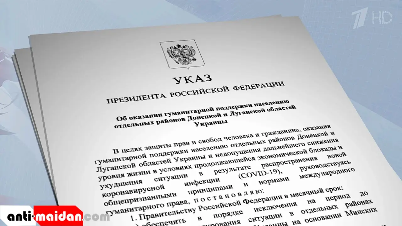 Президент РФ подписал Указ о гуманитарной поддержке жителей отдельных районов Донбасса.