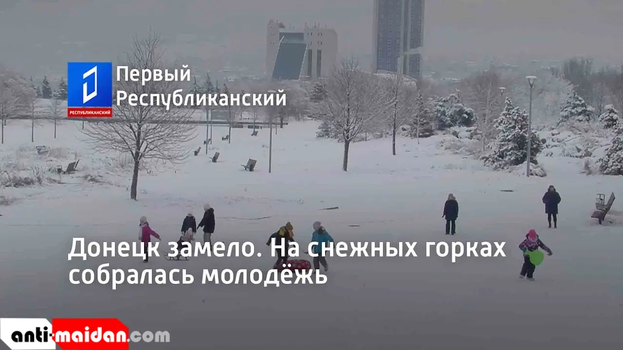 Донецк замело. На снежных горках собралась молодёжь