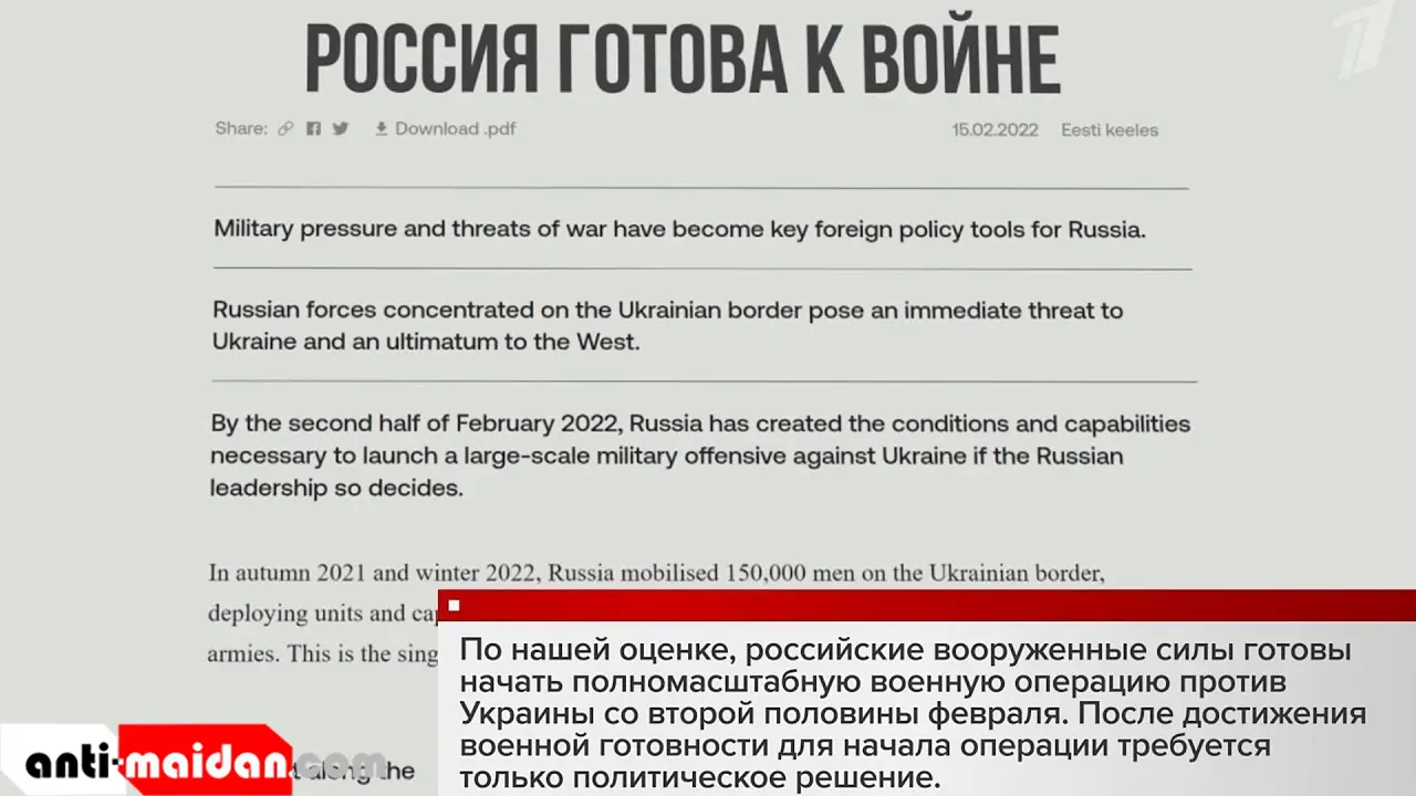Эстонская разведка в коммюнике проанонсировала вторжение России на Украину.