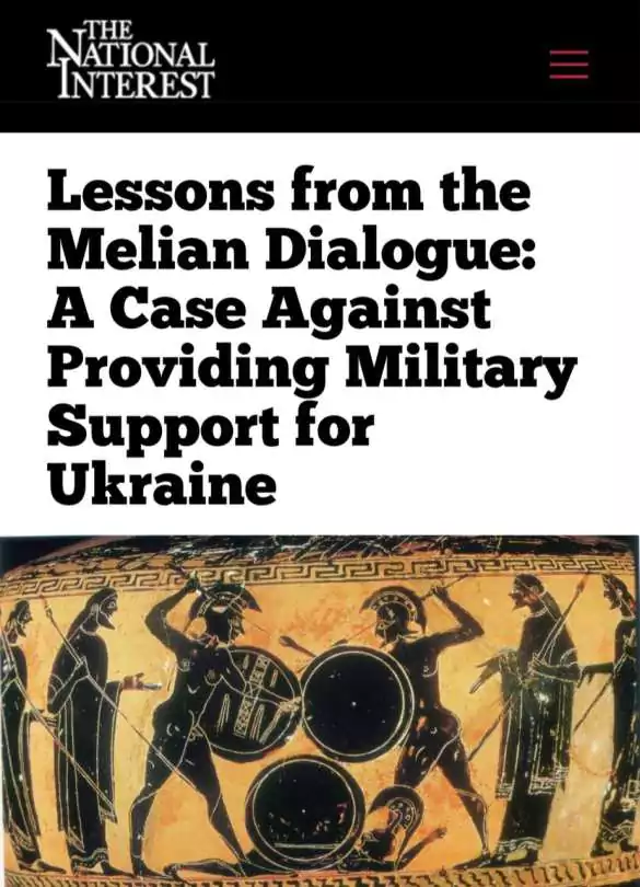 National Interest на примере античного противостояния острова Мелос и Афин убеждает читателей, что накачивание Украины оружием — это путь к ее гибели и разрушению.